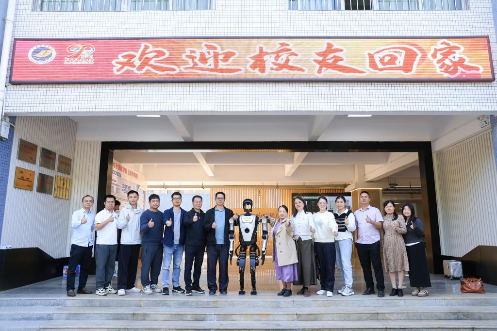 “欢迎校友回家!”学院的智能机器人01化身“暖心向导”,凭借矫健的外形和灵活的互动能力,成为接待现场的“小明星”。它不仅能识别校友身份并主动送上问候,还能熟练介绍学院近年来的发展成果、校园布局及校庆活动安排,更会俏皮地与校友们进行互动问答,现场笑声不断。一位毕业十年的校友笑着说:“没想到现在学院的智能化发展这么快,这个机器人既专业又可爱,一下子就拉近了我们和学院的距离。”