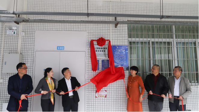 仪式的最后,杨洲书记、高静董事长、方鑫总经理、龙俊书记、彭小红院长和杨原志部长共同为联合共建实验室揭牌。