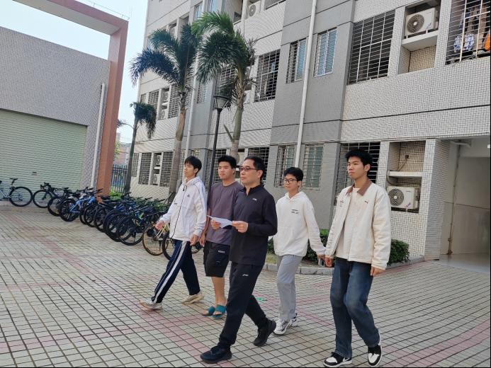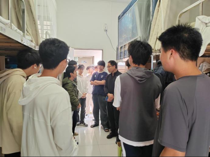 党委书记龙俊在班主任冼远清老师陪同下走入信管1251、1252班男生宿舍走访调研,与同学们面对面亲切交谈,将关怀与温暖送到学子身边。