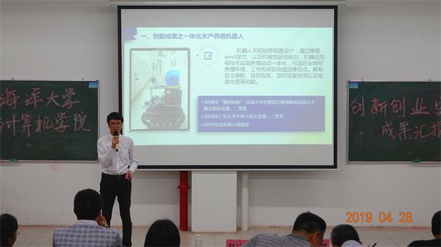 接着,创新创业实践基地的十支优秀科技团队进行了总结汇报。各团队分别从科技竞赛获奖、学术科研、产品开发及技术创业等四个方面进行了总结汇报,内容涉及了物联网应用、数据挖掘、自动控制、人工智能等技术。这些成果在海洋领域、农渔业、工厂自动化及民用消费等方面得到了相关应用。现场嘉宾们对各团队的汇报提出了建议和指导并进行了打分。汇报团队的精彩演讲不时获得现场观众的阵阵掌声,各创业团队呈现的最新科技作品让现场嘉宾和同学们啧啧称赞。汇报结束后,现场的嘉宾领导对各团队的创新创业成果给予了高度评价。